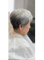 白髪を自然に活かしたスタイル。エイジング毛で細くコシのない髪質でもボリュームと動きを出しシルエットを奇麗に見せるショートスタイル
