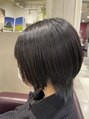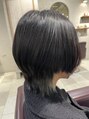 襟足の長さを残したショートウルフ。襟足の部分だけ、ブリーチをして明るめのブルーをいれました。初めてのカラーの為、希望の明るめのブルーが入るようにしっかりとブリーチで色をぬくのがポイント。