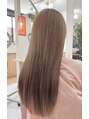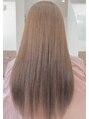 縮毛矯正ストレートで全体を整え、おさまりよく。サイエンスアクアで保湿力が高まり、なめらかな手触りに。スーパーロングストレートでもスタイリングしやすい軽さに仕上がります。