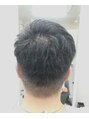 ダイヤモンドヘッドゆえのサイドの張り出しは今回無視!とにかく軽く見えるようにというのがオーダー。短い髪の毛をスタイルチェンジするのに左右非対称(アシンメトリー)はカッコいいのでオススメです。