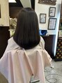 ロングストレートスタイル。自然に内巻きになるシルエット。