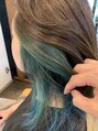 ブリーチしてからターコイズブルーのカラーバターをインしました