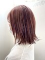 肩について自然にハネる長さに仕上げました。そのままオイルつけて仕上げてもよし、コテで巻ける長さがあるので、ゆるく巻いてもかわいいです!カラーは透明感があるけど、明るすぎないピンクブラウンに。前回施術時にブリーチしてあります。