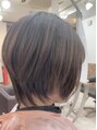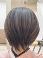 前下がりレイヤーのショートボブ。かんたんストレートでボリュームダウンに。手触りなめらかで、まとまる仕上がりに。髪を柔らかくする施術として定期的なメンテナンスに。