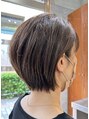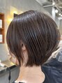 ミディアムスタイルからのスタイルチェンジ。襟元をスッキリタイトに抑えた大人のボブスタイルです。カラーはシルバー系で落ち着いた雰囲気に。
