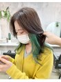 インナーブリーチ1回~。脱色したインナーにカラーバターグリーンをオンカラー。