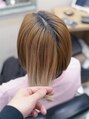 毛先にブリーチ、黒染めからブリーチの複雑な履歴の初めましてのお客様。初回のご来店では全てが理想とは行きませんが、これから回数を重ねて綺麗にして行きます。