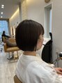 襟足ギリギリのあごラインのミニボブ(^O^)首がスッキリして長く見えるので、スタイルがよく見えます♪