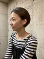 ベースは丸みのあるショートボブです。耳にかけてスッキリしたスタイリングです。