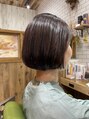 【ミニボブ×ピンクブラウン】コンパクトにまとまるように量感調節をさせて頂き、おうちでも扱いやすくなるよう心がけてカットさせて頂きました。色味は程よくピンクを混ぜ、艶髪に。