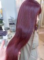 スーパーロングとロングリタッチブリーチです。ロングリタッチはブリーチワークがかなり繊細になります。切れないようにムラなく抜いて行きます。色は鮮やかなボルドーレッド、スーパーロングとの相性も良きです。