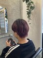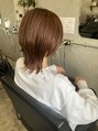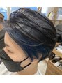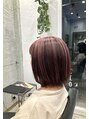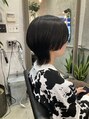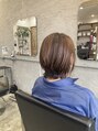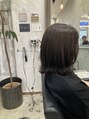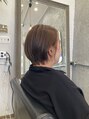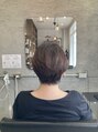 ショートボブ表面は流れやすいようにカット。根本は白髪を染めでアッシュカラー