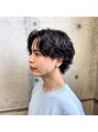 スパイラル黒髪スーツツーブロックメンズパーマ/ホットペッパービューティー