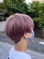 メンズにも似合うややパープル寄りのピンク系ハイトーンカラー。透明感を出すために18レベルまでブリーチで明るくするとGOOD。色落ちも綺麗です。