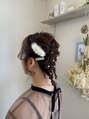 結婚式参列でヘアセットにお越し下さいました。ツインだけど子供っぽくならないように崩し過ぎず、後ろ目につくりました。