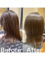 縮毛矯正でクセを伸ばして、毛先の質感はやわらかく軽く。カラーは赤味を消して透明感UP。くすませ過ぎないのがポイントです。