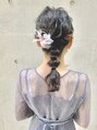 - ヘアセット ヘアアレンジ ミディアム 編みおろし 三つ編み 編み込み 玉ねぎヘア イヤリングカラー