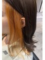 インナーは一回ブリーチしてパステルオレンジに、上はインナーになじむようにオレンジブラウンにしてとてもかわいいカラーに仕上げました♪