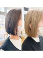 ボブ。グレージュ。ダブルカラー。ブリーチ履歴のある状態からグレージュのカラーを重ねています。