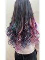 地毛はハイライト多めに全体に入れてブラックパープルにカラーして、原色エクステ8色をバランス考えながら160g付けました☆