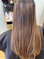 細めのハイライトをたくさん入れたベースに、グレージュカラーで全体に透明感をプラス◎
