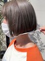 1回のブリーチベースに重ねたオリーブベージュカラー◎カットスタイルはミニボブです。