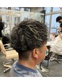 スパイラルパーマ/メッシュ、ハイライト/メンズショート