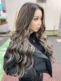 透明感のあるグレージュにホワイトカラーのハイライトは冬にピッタリ♪ブラックコーデに映えますよ☆