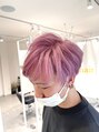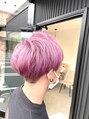 透明感のある濃いめのピンクラベンダー(^^)次回のカラーに影響しにくい色で染めてあります☆お洒落な男性のお客様♪