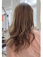 胸下ロングベースはそのままで鎖骨から胸ラインにレイヤーカット。巻き髪しやすいようにギリギリまで全体を毛量調整。毛先は先細にして軽い仕上がりに。ロングヘアでもスタイリングやドライヤーが時短に。
