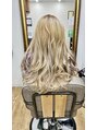 全頭ブリーチ1回でゆっくり18レベルまで上げてなるべく髪の負担を減らしてます!ベースをベージュから白っぽくなるまでのグラデーションを入れつつ、インナーに濃いめの紫を入れて遊びココロを注入!!人と被りたくない方に!!