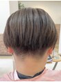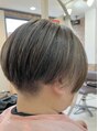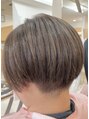 マッシュベースのショートレイヤー。サイド・ツーブロック、バック・刈り上げでスッキリと。縮毛矯正ストレートでおさまり良く、オーガニック成分配合カラー・10トーンオリーブベージュで透明感を。