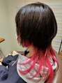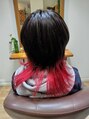 全体の半分をブリーチ!しっかり抜いた後。オンカラー。希望は、蛍光赤っほく。いろは、確認しながらきめました!