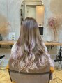 地毛のブリーチ履歴を活かしたグラデーションスタイルにーペールパープルをハイライトでいれています。