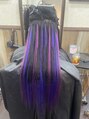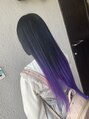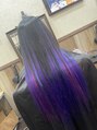 しっかり黒染めを施した後、パープル2色でバレイヤージュになるように配置。自然なつながりが出るように仕上げました☆