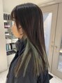 個性派ペールグリーン×グレージュ/大人インナーカラー