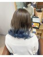 裾カラーブルーヘア毛先の色味だけでも可愛いスタイル裾カラーの幅変えるだけでも雰囲気変わります。