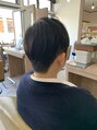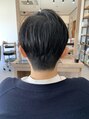 横~後ろにかけてスッキリ2ブロックカット馴染むようにぼかしながらトップを被せてドライヤー、オイル仕上げ。