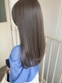 アッシュとオリーブで作るミントアッシュでオレンジ味を抑えたベージュ系です。明るさはなるべく変えずに色味を入れる感じの仕上がり。