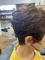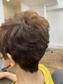 トップにポイントパーマでボリュームとスタイリングしやすい毛流れを。襟元の浮き癖を取ってステキに