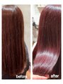 ピンク系の色味で艶髪プレミアムカラー!トリートメントしながらカラーできます☆2枚目のbefore、after比べて見てください!カラーするだけで艶髪になれます☆