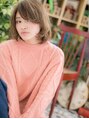【スタイルは★ブックマーク★が便利】顔周りの髪を前下がりにスイングさせて、頬骨やエラのハリをカバーしたくせ毛風ふわミディ。斜めバングで目力UPし、大人かわいい雰囲気に。厚めバングでも◎イノセントカラーが小顔でハーフ顔な印象に見せてくれます♪