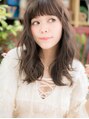 【スタイルは★ブックマーク★が便利】目力UPの厚めバングと無造作ゆるふわエアリーカールがフェミニンな抜け感くせ毛風セミディ。斜めバングや前下がりフォルムで個性的にも☆ラブリーからノームコアと相性バッチリ♪耳かけで小顔効果UP!