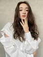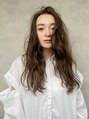 寒色系のチョコレート、グレージュカラーの柔らかスーパーロングです。パーマではなくアイロンの巻きで作っています。stylist高橋玲子