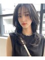 モデルさんはブリーチしてネイビーブラックにカラーしています。地毛で黒髪とかでも◎メリハリのあるカットスタイルなので抜け感もあります。毛量はスッキリめ。軽やかなくびれレイヤースタイルです。