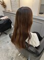ワンカラーでつくるミルキーなグレージュ。オレンジみの強いお客様なので、回数を重ね髪の毛の色素を少しずつとりながら、ベージュのような質感の色味を作りました。