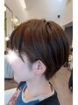 少し丸みがあり、毛量を出来るだけ少なく調節したコンパクトショート。カラーは赤みを抑えた透明感あるナチュラルアッシュです。