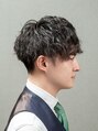 耳周りや襟足はツーブロックでスッキリ、きれいな束感とウェーブを出しながら完璧なシルエットになるよう、トップはスパイラルパーマ、サイドは波巻きパーマをミックスしたメンズパーマスタイル。ビジネスシーンで光る都会的でおしゃれなヘアスタイルです。