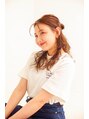 緩く巻いて前髪は分けて少し大人っぽさを出しつつ、ふんわりとした血色感のメイクでカジュアルな感じにしました。