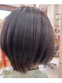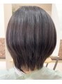 前下がりのショートレイヤーボブ。かんたんストレートで広がりやうねりを和らげまとまる質感に。オーガニック成分配合カラー・6トーンラベンダーブラウンでツヤと深みのある仕上がりに。